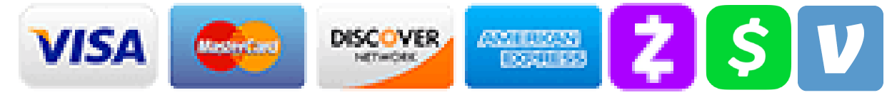 Cash, Checks, Cash App, Zelle, Venmo, Credit & Debit Cards